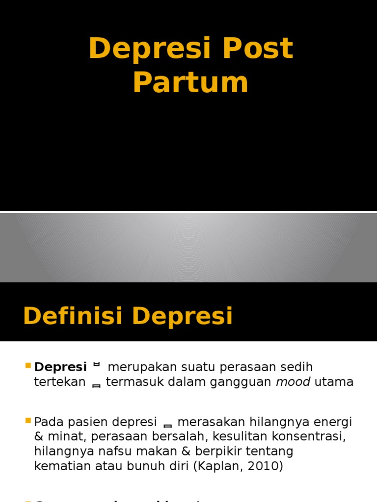 Bagaimana diagnosa keperawatan depresi post partum? Depresi post partum adalah perubahan mood ibu yang terjadi 7 hari setelah melahirkan dan berlangsung selama 30 hari/4minggu. Ini manfaat konsumsi buah manggis secara rutin untuk kesehatan. Depresi postpartum pertama kali ditemukan oleh pitt pada tahun 1988. Depresi pertama kali di temukan oleh pitt tahun 1988.