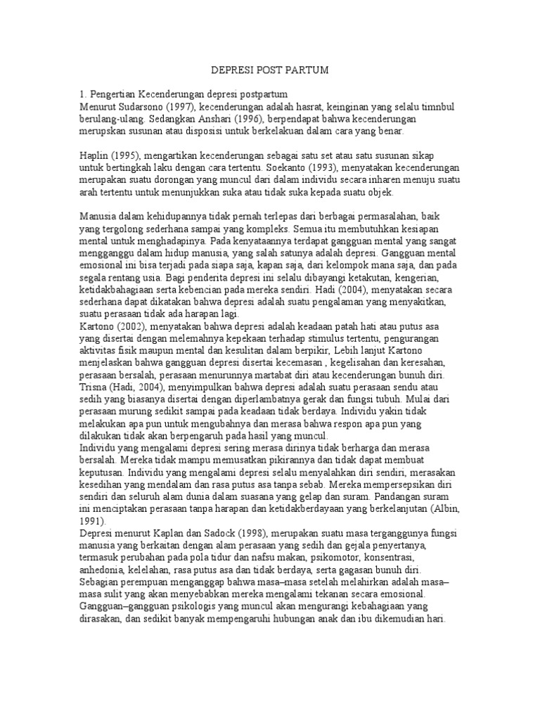 Menemukan kejadian depresi post partum. Siapa bilang depresi hanya menyerang mahasiswa ketika menghadapi skripsi? Disebabkan karena wanita menderita bipolar disorder atau masalah psikiatrik lainnya yang disebut schizoaffektif disorder. Did you know there is more than one type of postpartum depression? Erdasarkan uraian diatas dapat disimpulkan bahwa depresi postpartum erikania, j.
